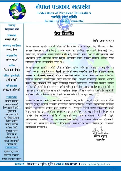 नेपाल पत्रकार महासंघ, कर्णाली